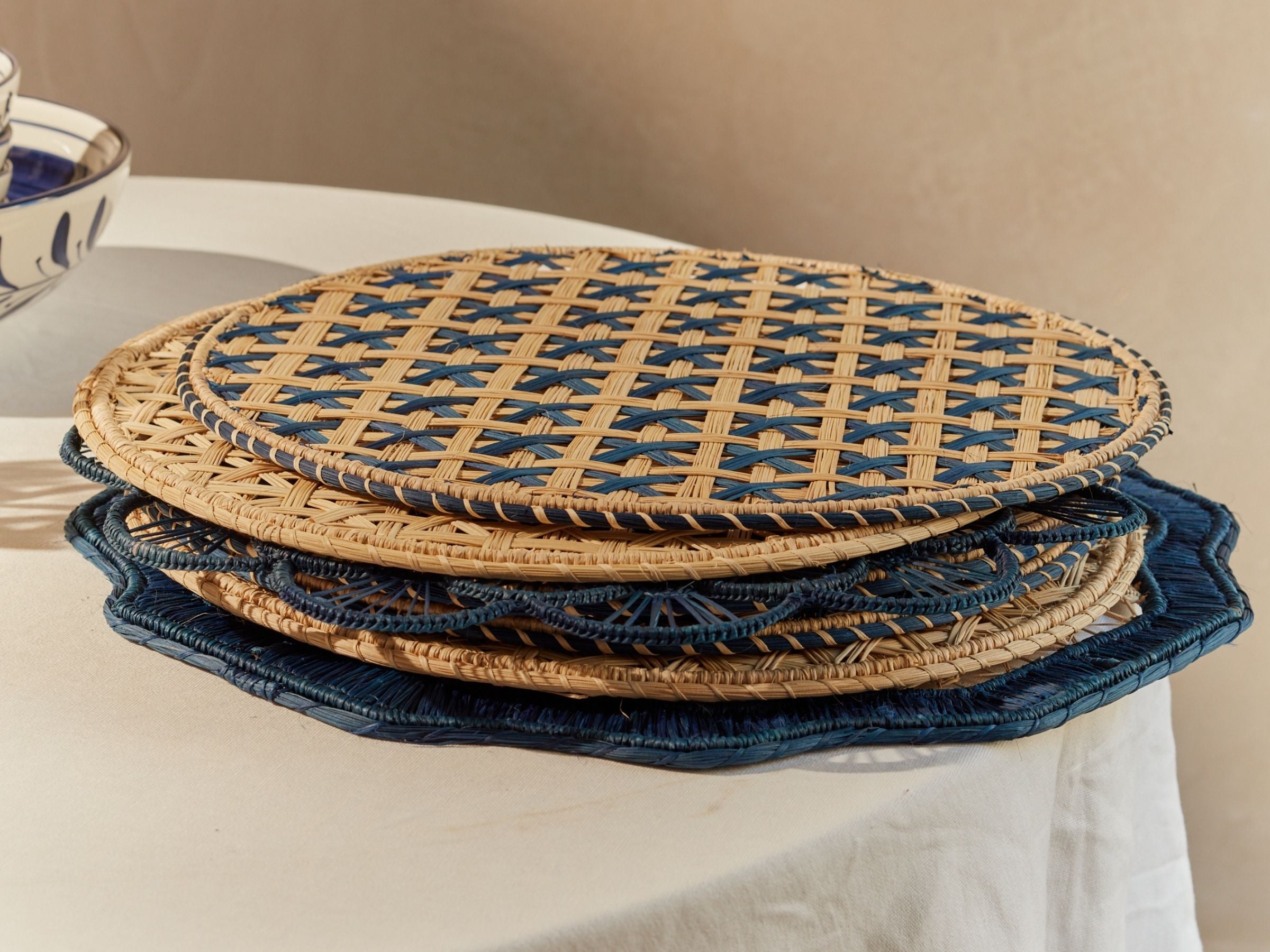 Handwoven in Usiacurí from natural iraca palm, the Notalagia woven placemats, napkin rings, and coasters draw on traditional shapes and time-honoured weaves inspired by collected and inherited pieces