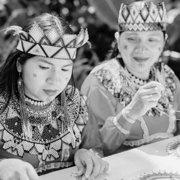 The Corazón napkin rings are a celebration of craftsmanship and artistry. Each piece begins with a handwoven Iraca palm spiral, carefully shaped by artisans in Colombia. At its centre blooms a delicate flower, meticulously handcrafted from millimetric glass beads — a testament to patience, skill, and tradition.